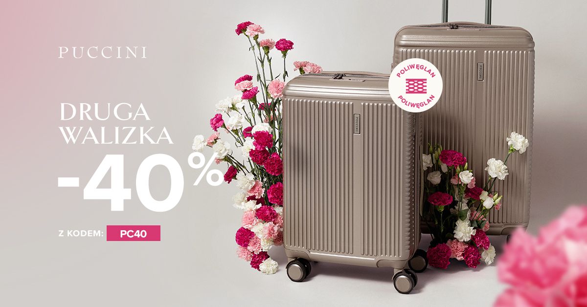 Extra Rabat -40% na drugą i kolejną walizkę z poliwęglanu z kodem PC40