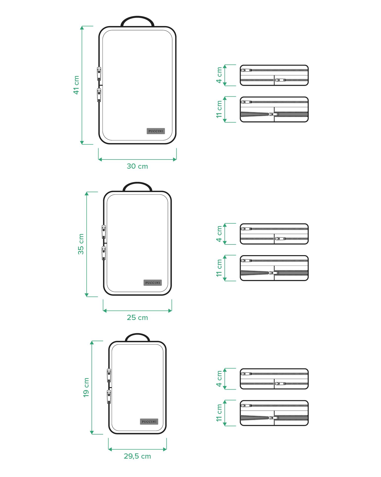 Organizery zostały wykonane z lekkiego i łatwego w czyszczeniu poliestru. Pozwalają utrzymać porządek w walizce oraz chronią ubrania i akcesoria przed zagnieceniami. Funkcja kompresji może znacząco zmniejszyć objętość zawartości - wystarczy zamknąć dodatkowy suwak. Dodatkowo każdy z organizerów został wyposażony w wygodny uchwyt, który ułatwia ich przenoszenie.